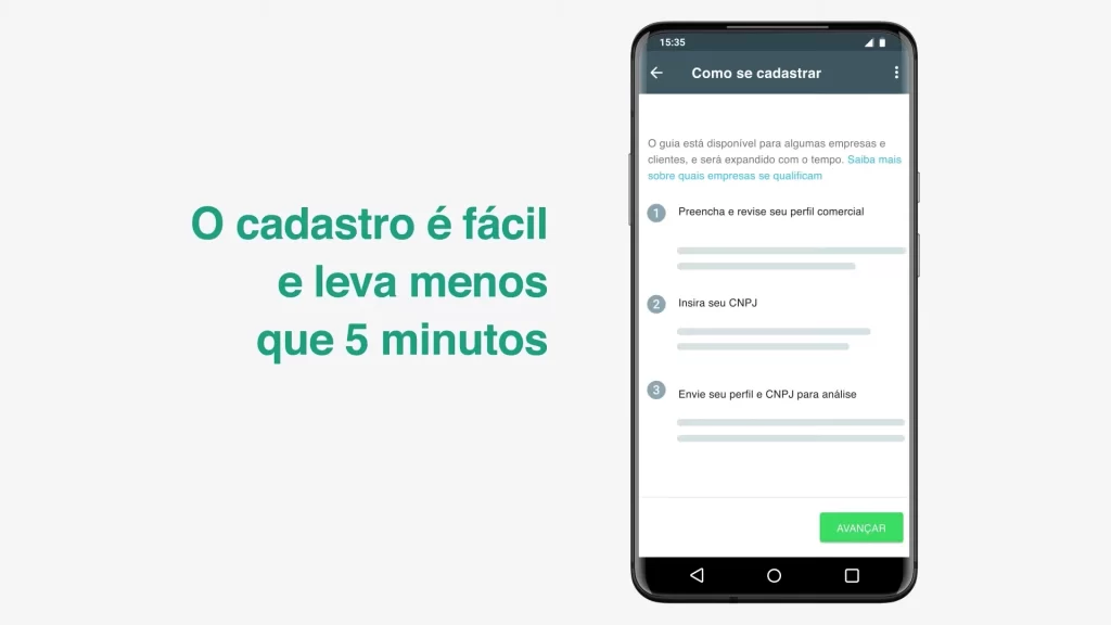 - Complete o cadastro e aguarde a análise. O WhatsApp entrará em contato caso mais informações sejam necessárias e notificará você quando o cadastro for aprovado.